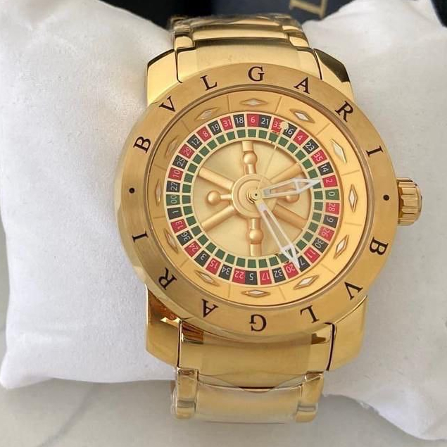Relogio Dourado BVLG Cassino Cassino Roleta e Joker Coringa Giratoria Banhado a Ouro 18k Pesado Luxo Masculino