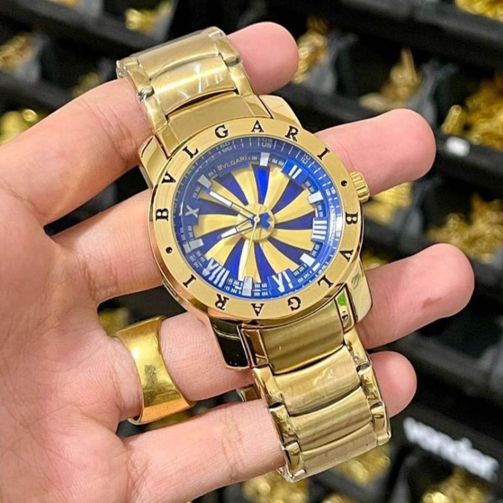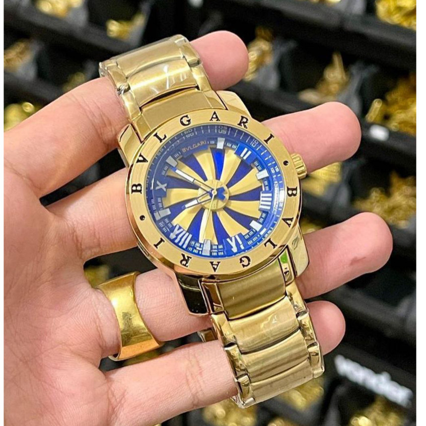 Relógio Masculino Dourado BV Cassino Roleta Giratória 1OO% á Prova D'ÁGUA Banhado á Ouro 18K Aço Inoxidável Luxo Puro Homem