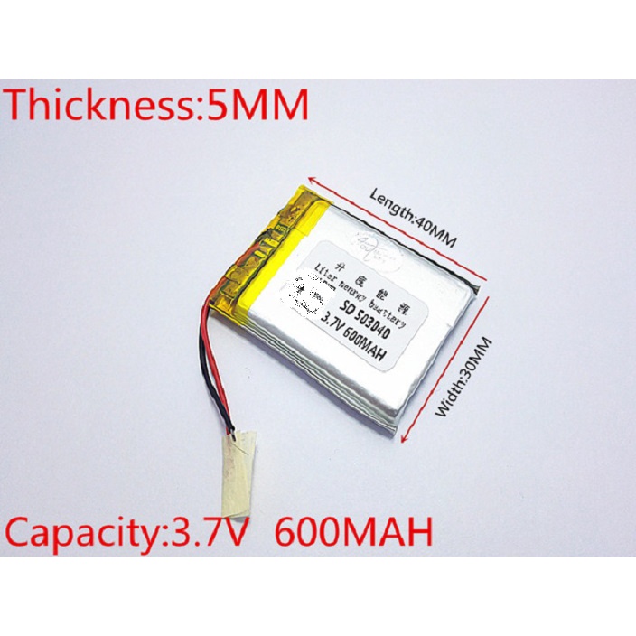 Bateria 600 Mah 3,7 V 5mm X 30mm X 40mm C/2 Fios 503040 '