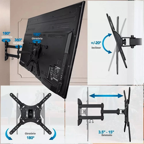 Suporte multifuncional de TV Suporte Tv Tri- Articulado Lcd Led Plasma 14 A 55 Polegadas