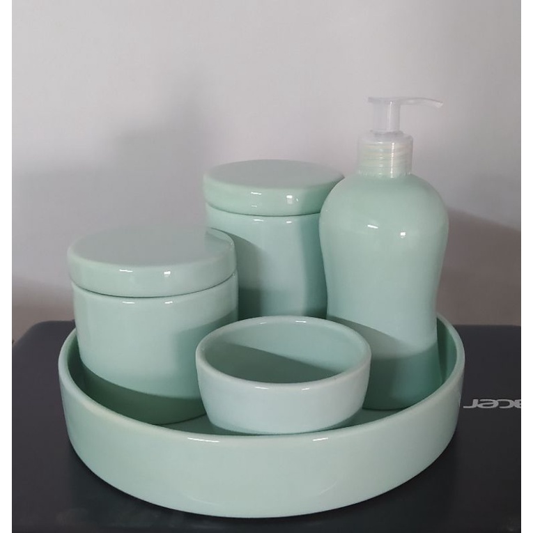 kit Higiene Bebê Porcelana Verde Band Redonda Verde 05 Peças.
