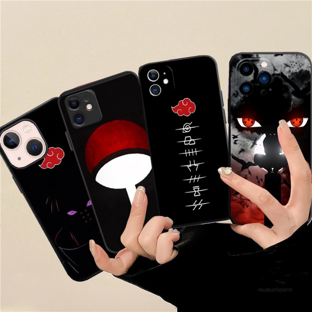 Desenho Animado Anime NARUTO Syaringan Caixa Para IPhone 12 13 Pro Max Mini À Prova De Choque TPU De Silicone Preta Telefone