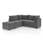 Sofá De Canto Com Puff Monte Do Seu Jeito Benfica Veludo Luizzi Cinza