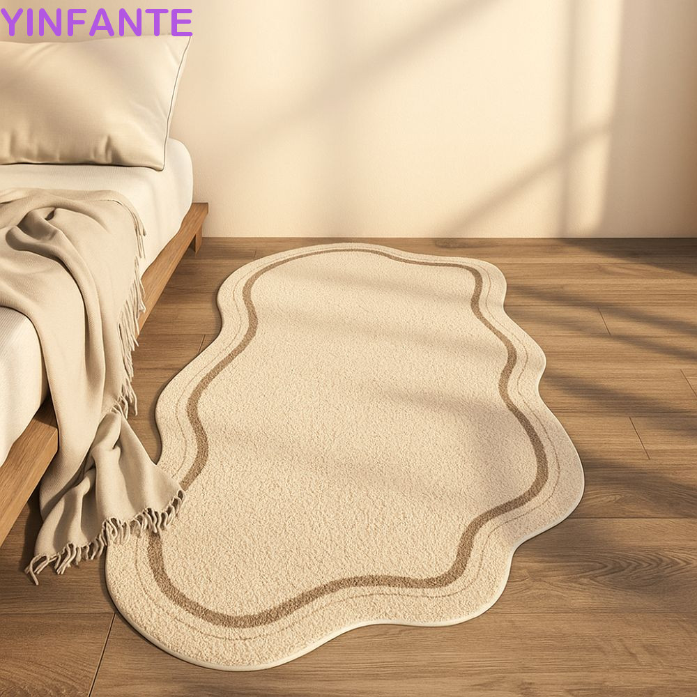 Tapete De Quarto YINFANTEWN , Irregular Macio Estilo Creme Cabeceira Minimalista Absorvente Antiderrapante