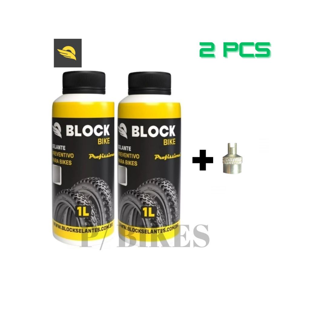 Kit 2 Peças Selante Preventivo Block Para Pneu de Bicicleta C/ Câmara de Ar Profissional - 1 Litro