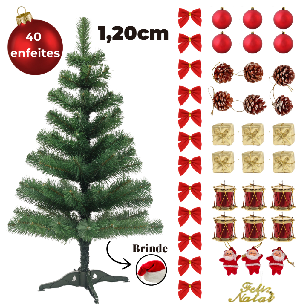 Arvore Natal Decorada Bolinhas 120cm 110 Galhos Decoração Pinheiro Natalino + 12 Bolinhas Vermelhas