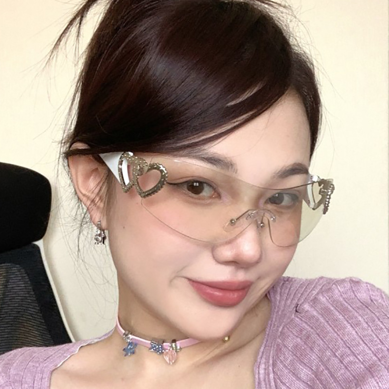 Nova Moda Óculos De Sol Sem Borda Personalizados Masculinos E Femininos Da Y2K Luxo Designer Uma Peça Love Heart Shape