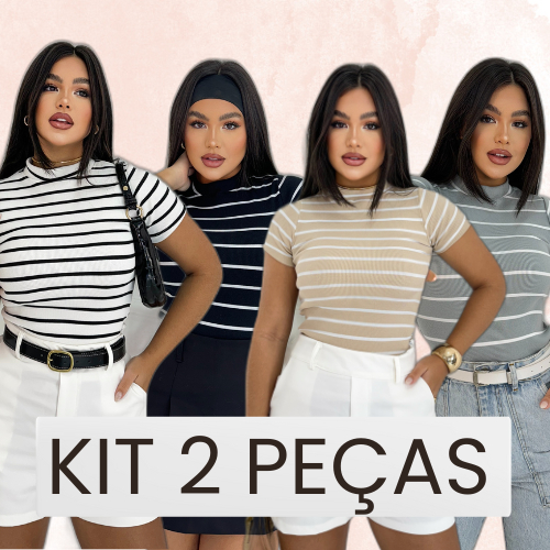 KIT 2 CAMISETAS BLUSAS LISTRADAS PLUS SIZE TAMANHO GRANDE MODA 2025 G GG
