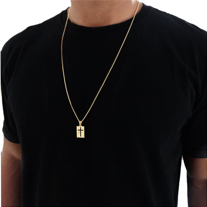 Corrente Piastrini Masculina com Pingente Placa Cruz Banhados a Ouro 18k Correntinha Cordão