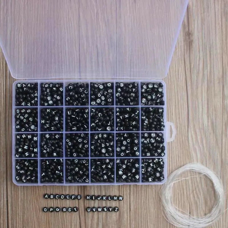 Kit 1250 Miçangas De Letras Alfabeto Preto + caixa