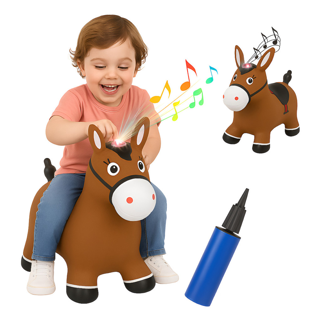 Cavalinho Pula Pula Burrinho Inflável Cavalo Infantil Marrom Com Bomba Inflar Som Luz Antiderrapante Coordenação Motora