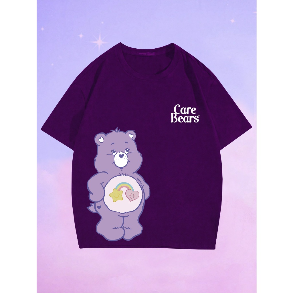 Camiseta Básica Unissex Cor Roxo Forte Blusa Oversized Ursinhos Carinhosos Estampa Infantil Desenho