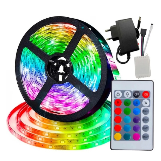 Fita Led 5M 10M Rgb 54 LED Á PROVA D'ÁGUA IP65 PARA AREA EXTERNA 12v 5050 INCLUSO + CONTROLE+CONTROLADOR