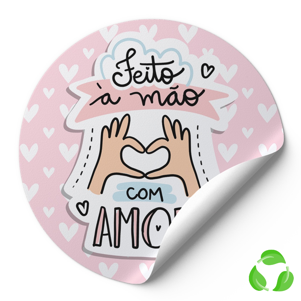 Adesivo Para Embalagens Selo Etiquetas Redondas Frase Feito A Mão Com Amor Rosa Corações