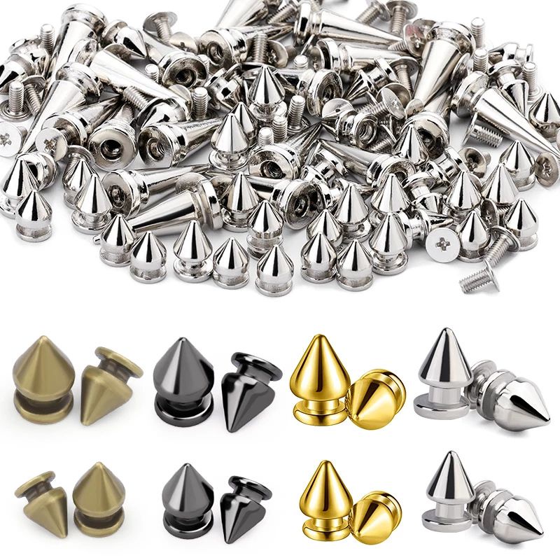 Spike de Roupa Aplique Metal Parafuso Couro Dourado, Prata ou Bronze 10 unidades