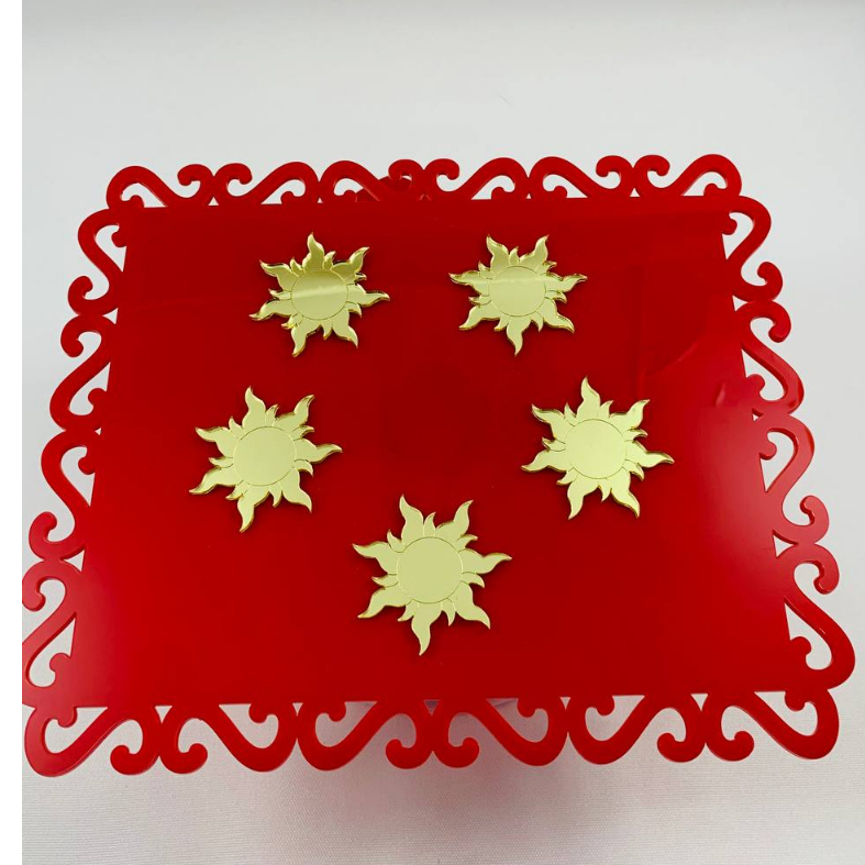 Aplique Sol Enrolados de Acrílico Espelhado Dourado 4 CM - Kit com 10 UNIDADES