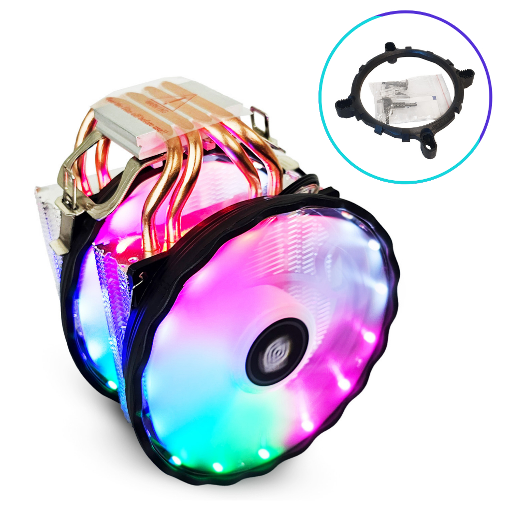 CPU Cooler Universal Led Rgb Duplo Dual FAN 120mm 4 Heatpipes Processador Intel Amd Ryzen i3 i5 i7 LGA 775, 115X, 1150, 1151, 1155, 1156, 1200, 1366, 1700 AM5, A4, AM3, AM3+, AM3, AM2+, FM2, FM2+, FM1
