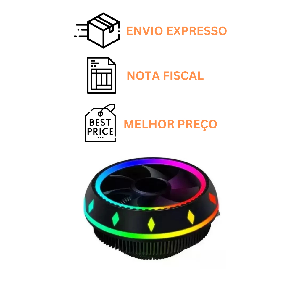 CPU Cooler Box Gamer Universal Led Rgb 4 Pin Processador Intel Amd Ryzen i3 i5 i7 LGA 775, 115X, 1150, 1151, 1155, 1156, 1200, 1366, 1700 FM1, FM2, AM2, AM2+, AM3, AM3+, AM4, 754, 940, 939