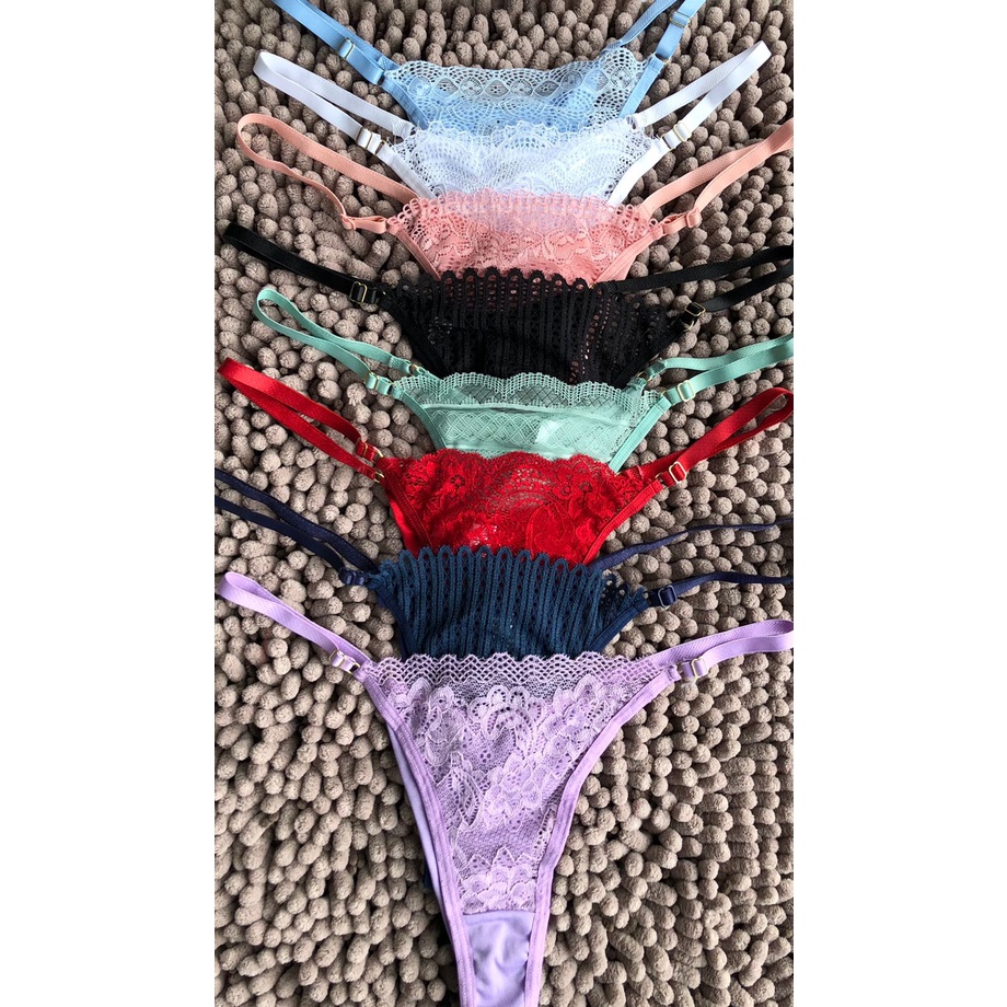 Kit com 5 Calcinhas Em Renda Fio Duplo Regulagem em Metal Moda Intima Lingerie Promoção Fio Dental