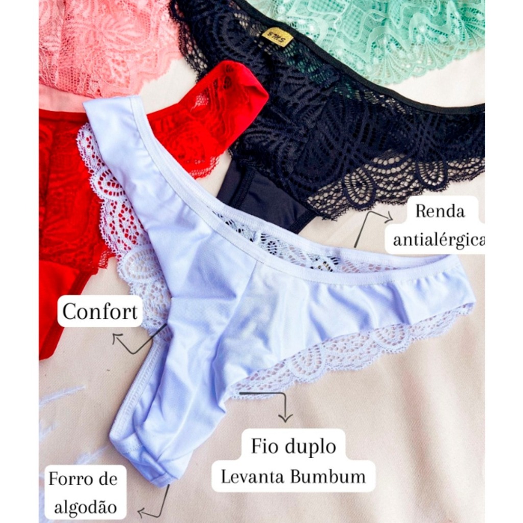 Kit com 5 Calcinhas Renda Fio Dental Duplo Renda e Microfibra Lingerie Sexy e Sensual Moda intima Feminina Revenda