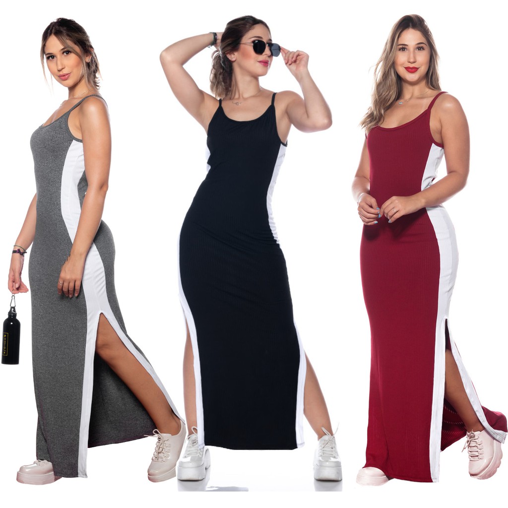 Vestido Longo Fenda Lateral Casual Midi Tendência Moda Feminina