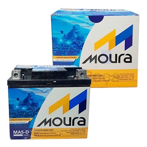 Bateria Moto Moura MA5-D 5Ah Original Titan 150/125 Fan Biz Aplicações: • HONDA Biz 125 KS/ES/I/+/EX /FLEX A partir de 05 Pop 110 I Todos os anos CG Fan 125 KS/ES Todos os anos CG 160 FAN 2016-2016 CG125 Cargo 125 ES/KS Todos os anos CG Titan 150 KS/ES/