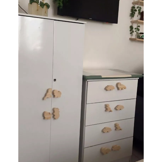 Puxador 8 - 12 - 15 unidades para Gavetas ,Portas, Cômodas em Madeira Pinus infantil Dinossauro