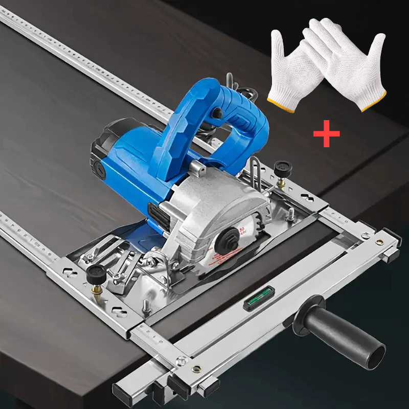 Guia de Serra Circular de Metal Ajustável com Mecanismo de Fixação - Nível Integrado, Corte Reto em Placas de Madeira