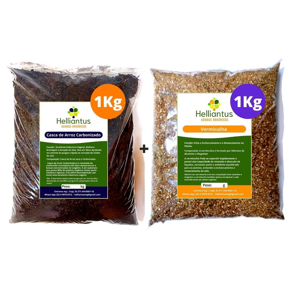 Kit 10Litros=1kg de Casca de Arroz Carbonizada + 10Litros=1kg de Vermiculita Expandida | Jardim, Suculentas, Horta