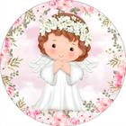 Painel em lona Batizado menina Anjinha 1,00x1,00 - Redondo festa