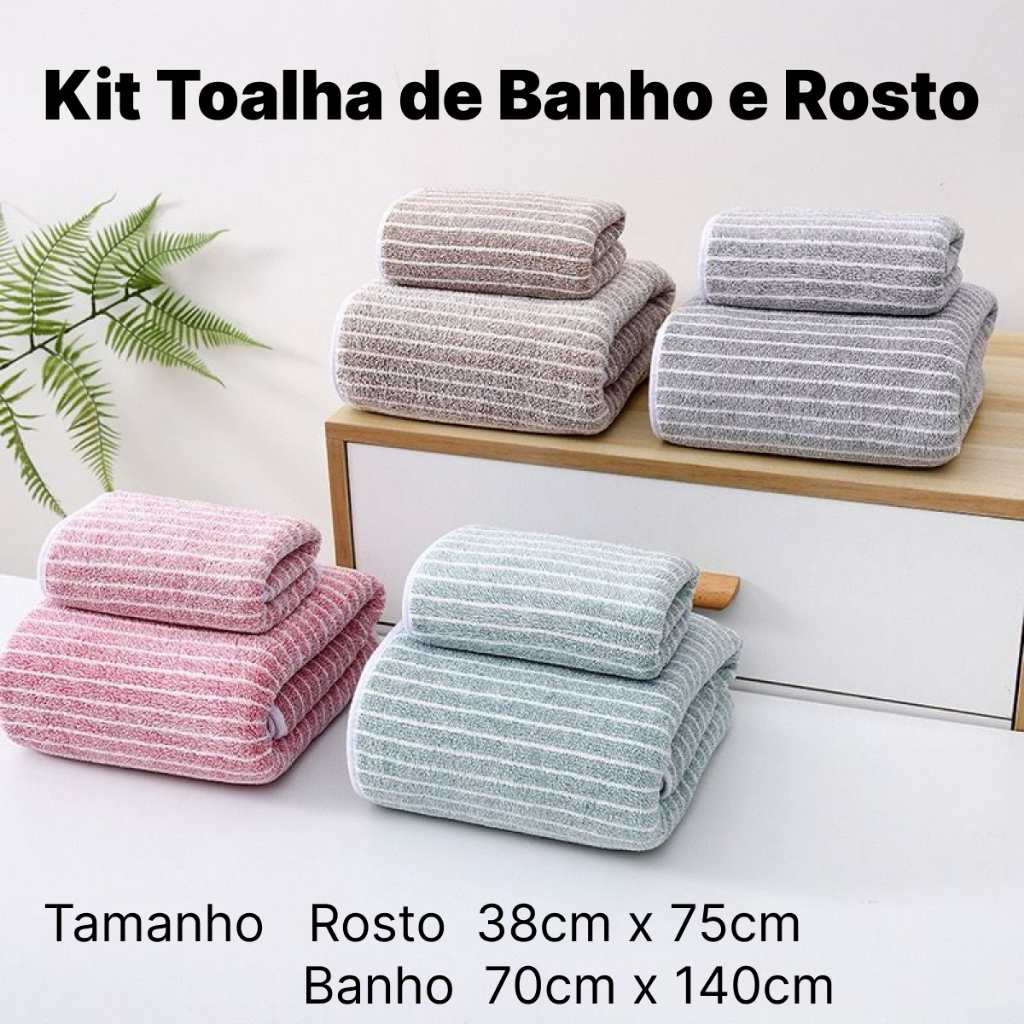Kit 2 Conjunto Toalha De Banho e rosto Grande 140 x 70 Cm Alta Absorção Viagem Natação Academia Praia Seca Rápido