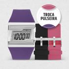Relógio Feminino Digital de Pulso Troca Pulseira com Kit 3 Pulseiras de Silicone Roxo, Rosa e Preto Luxo Elegante Fashion Mormaii