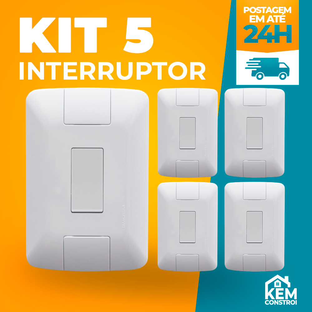 Kit 5 interruptor simples Tramontina uma Tecla Linha Aria