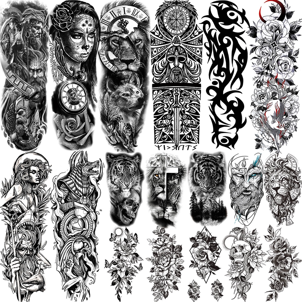 Tatuagens temporárias de braço completo para homens e mulheres adesivos realistas
