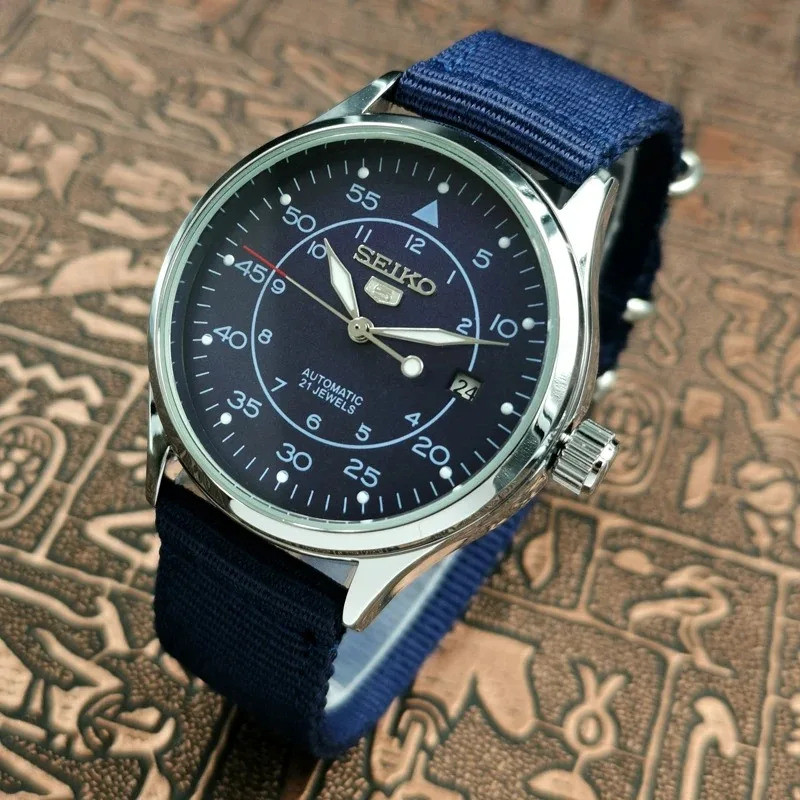 Relógio Masculino Seiko SNK809K2 5 Relógio Mecânico Automático à Prova d'Água com Parafuso, Pulseira de Lona Azul, Moda