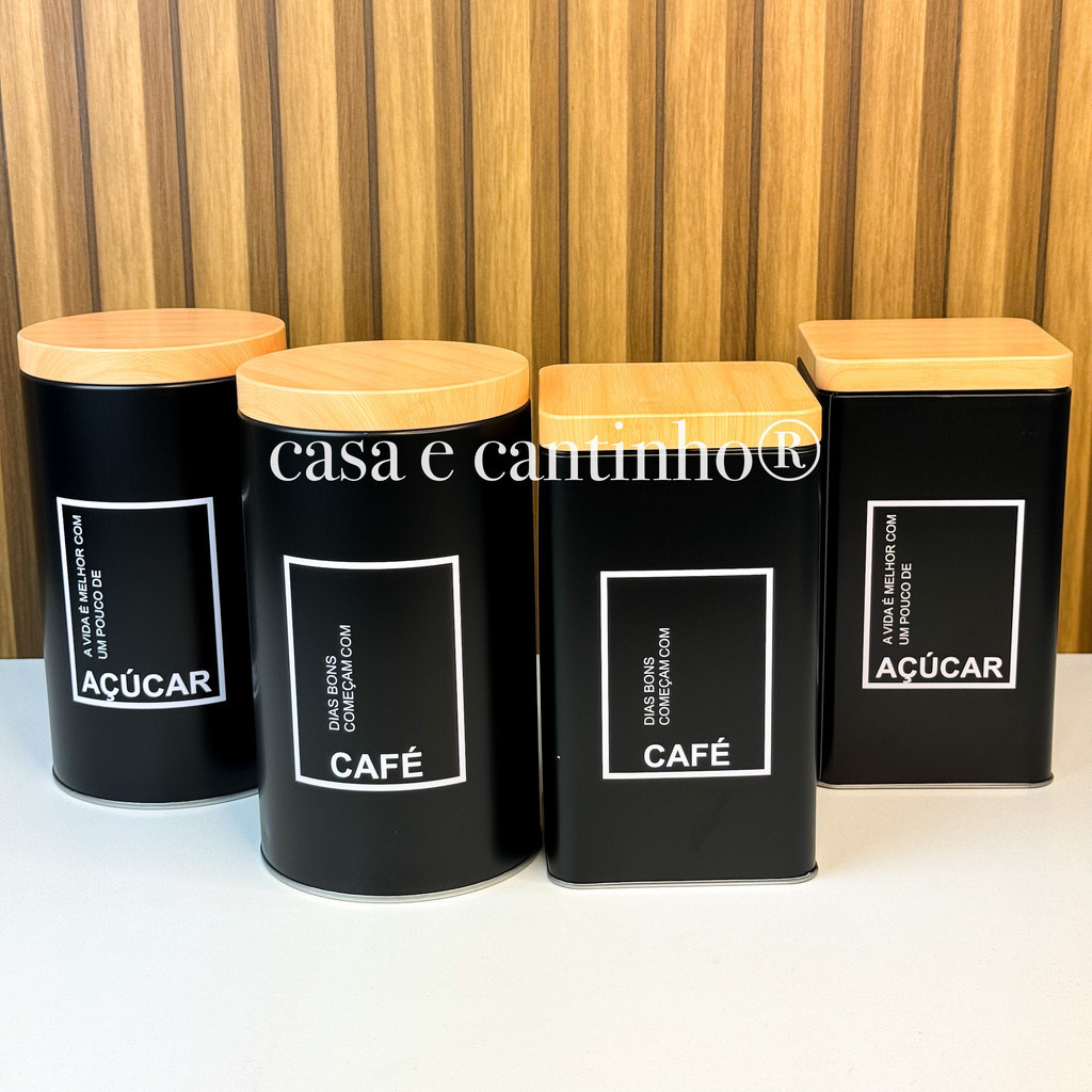 Lata Porta Mantimentos Pote De Café Açúcar Metal Decorativa Cantinho do Café Kit 2 Peças