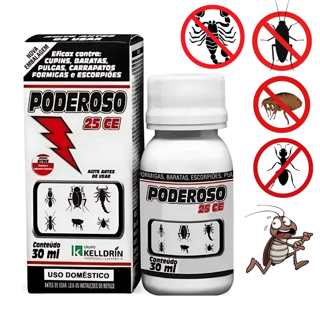 Poderoso 25 CE Contra Formigas, Escorpião, Baratas, Carrapatos, Pulgas e Cupim 30 ml Kelldrin