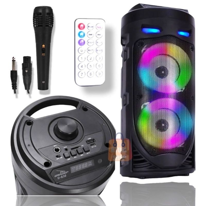 Caixa De Som Bluetooth Portátil Com Microfone Controle E Alça Grande iluminação Rgb