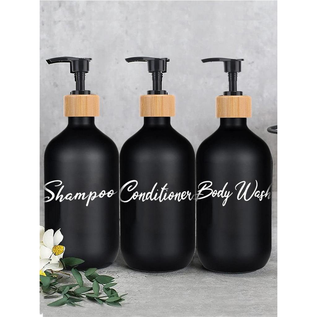 Frasco de 1 peça de chuveiro de banho Frasco de sabonete com letra impressa Sub-garrafa Shampoo / Showerer Gel /Conditioner Bomba de madeira de bambu