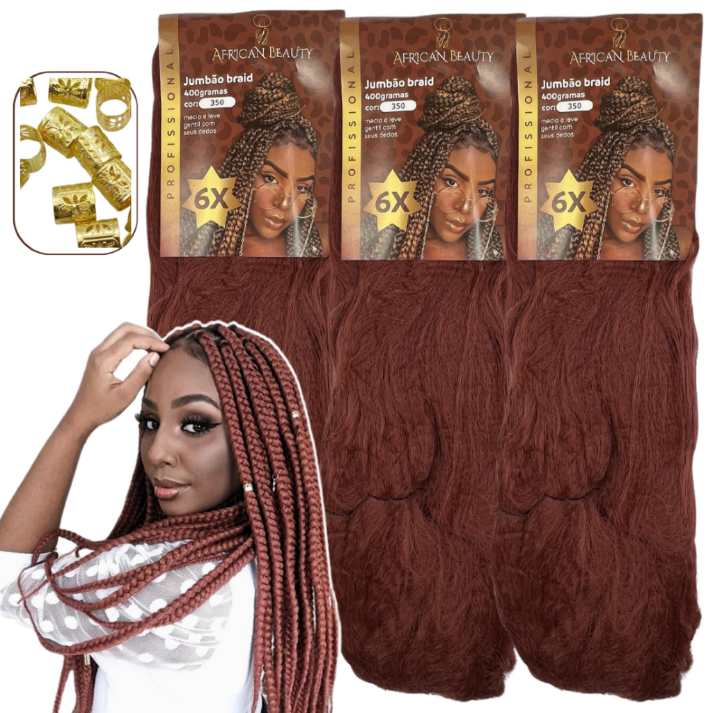 Kit 3 Cabelo Jumbo Jumbão Box Braids African Beauty + Anéis