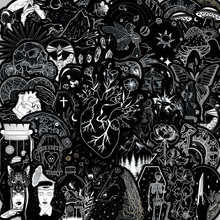 10/50Pcs Adesivos Góticos Pretos E Brancos Grafite À Prova D'água Mala Para Notebook Papelaria De Skate Frigorífico