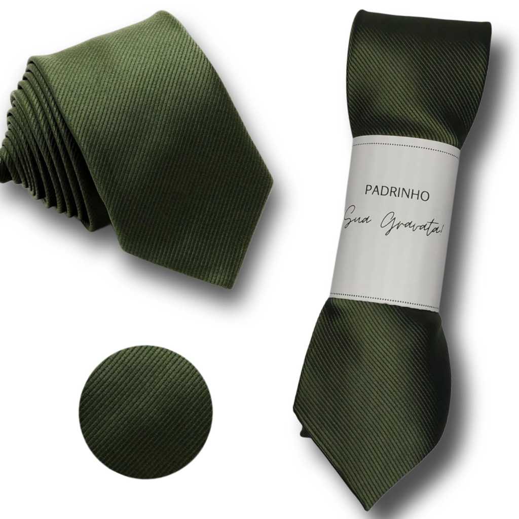 Kit de até 5 Gravatas p/ Padrinhos Verde Oliva Slim