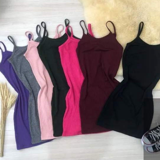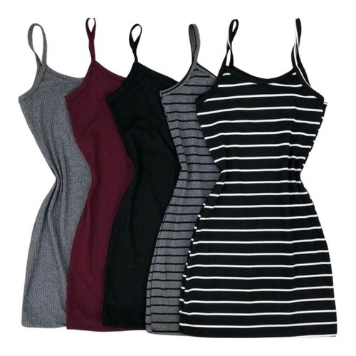kit 5 vestido tubinho canelado alça fina festa ano novo moda
