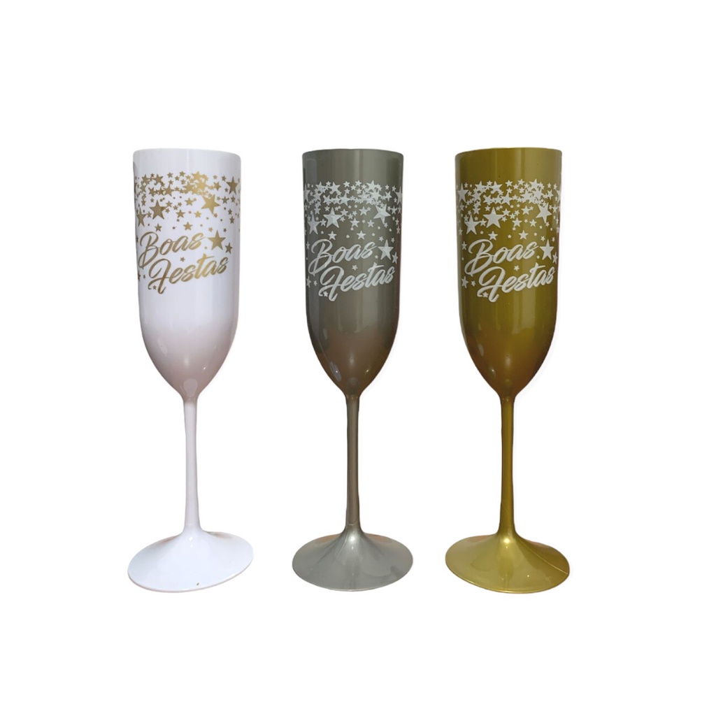 KIT 5 TAÇAS DE ACRILICO PERSONALIZADA CHAMPGNE ANO NOVO REVEILON NATAL FIM DE ANO FESTA EVENTOS CONFRARTENIZAÇÃO