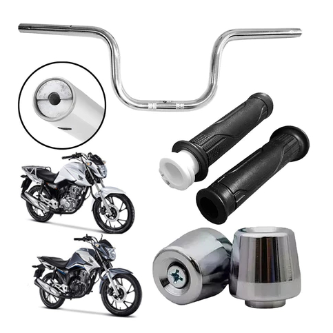 Kit Guidão cargo Manopla C/ Roldana + Punho S/Plug Cb500x Titan 160 + Pesinho Pcx Cromado Fan 160 Titan Start 160/150/125