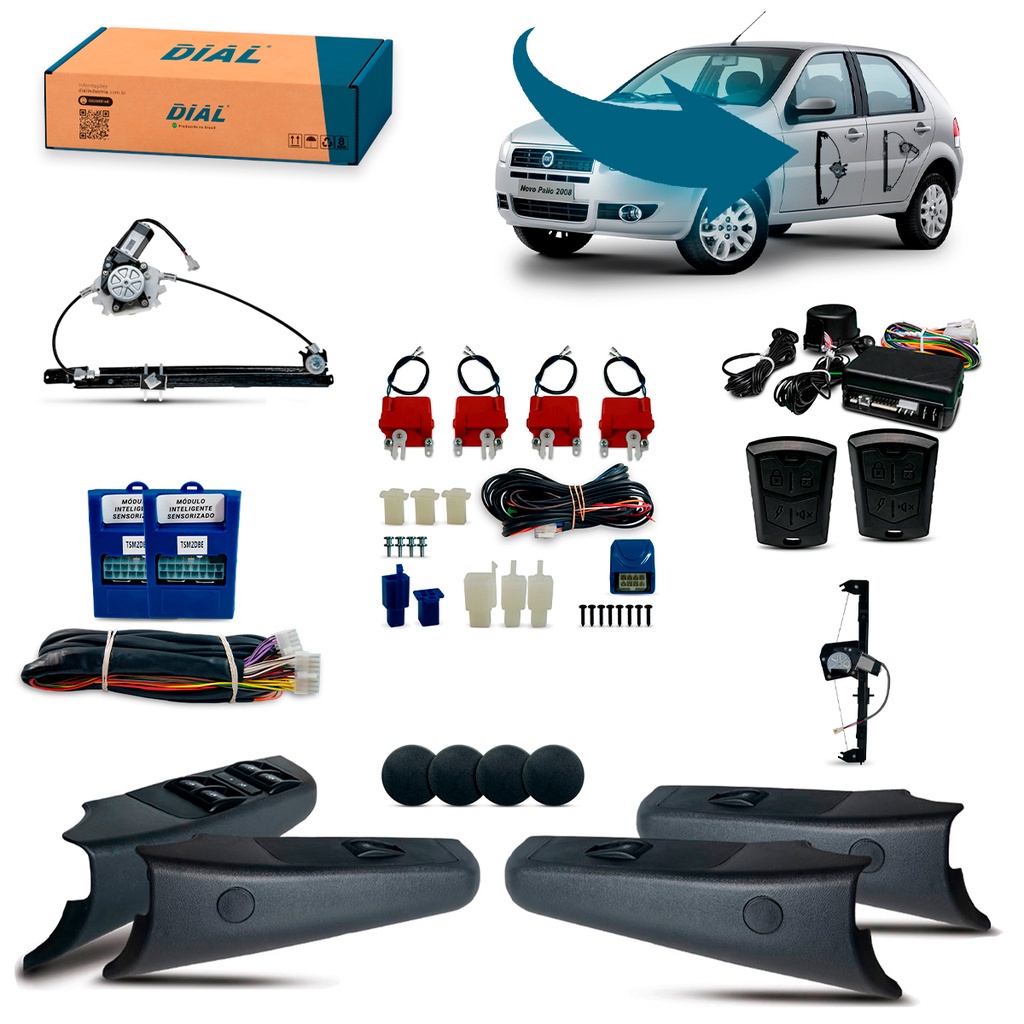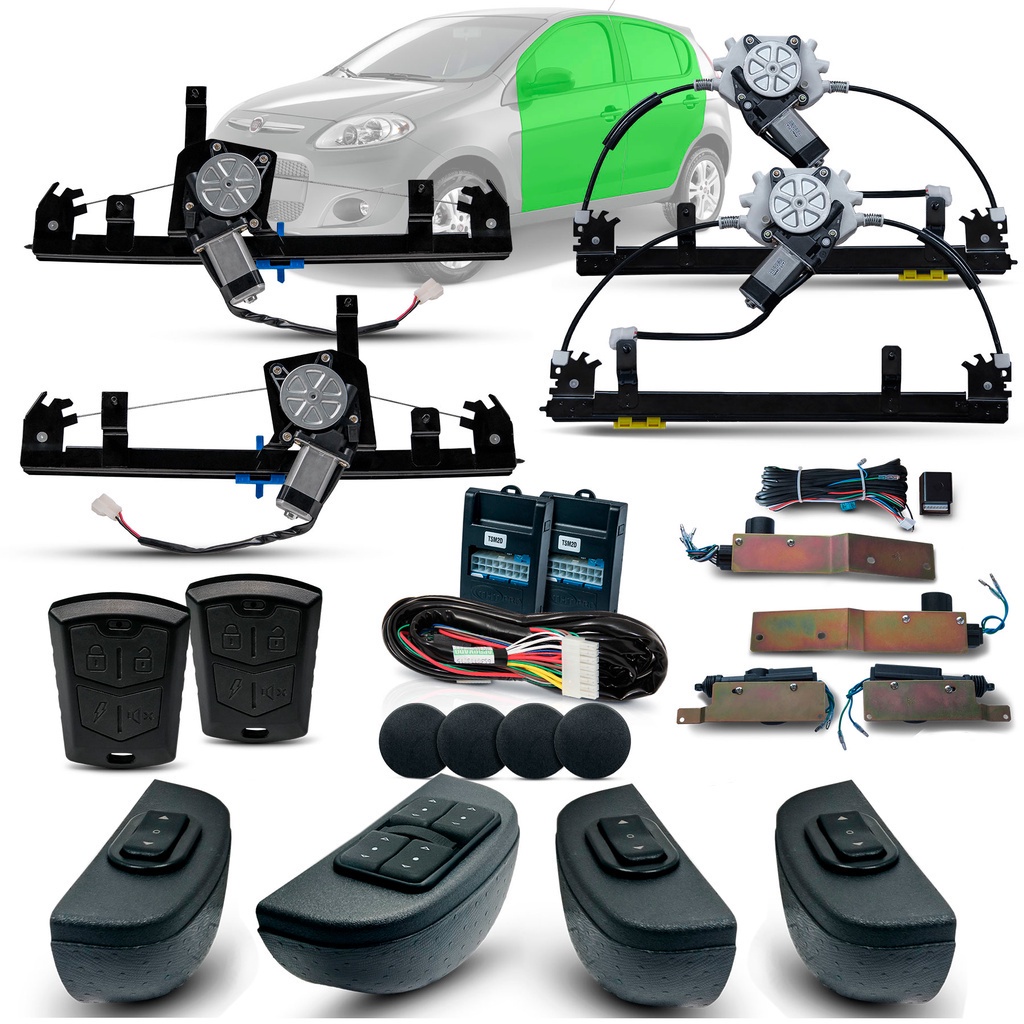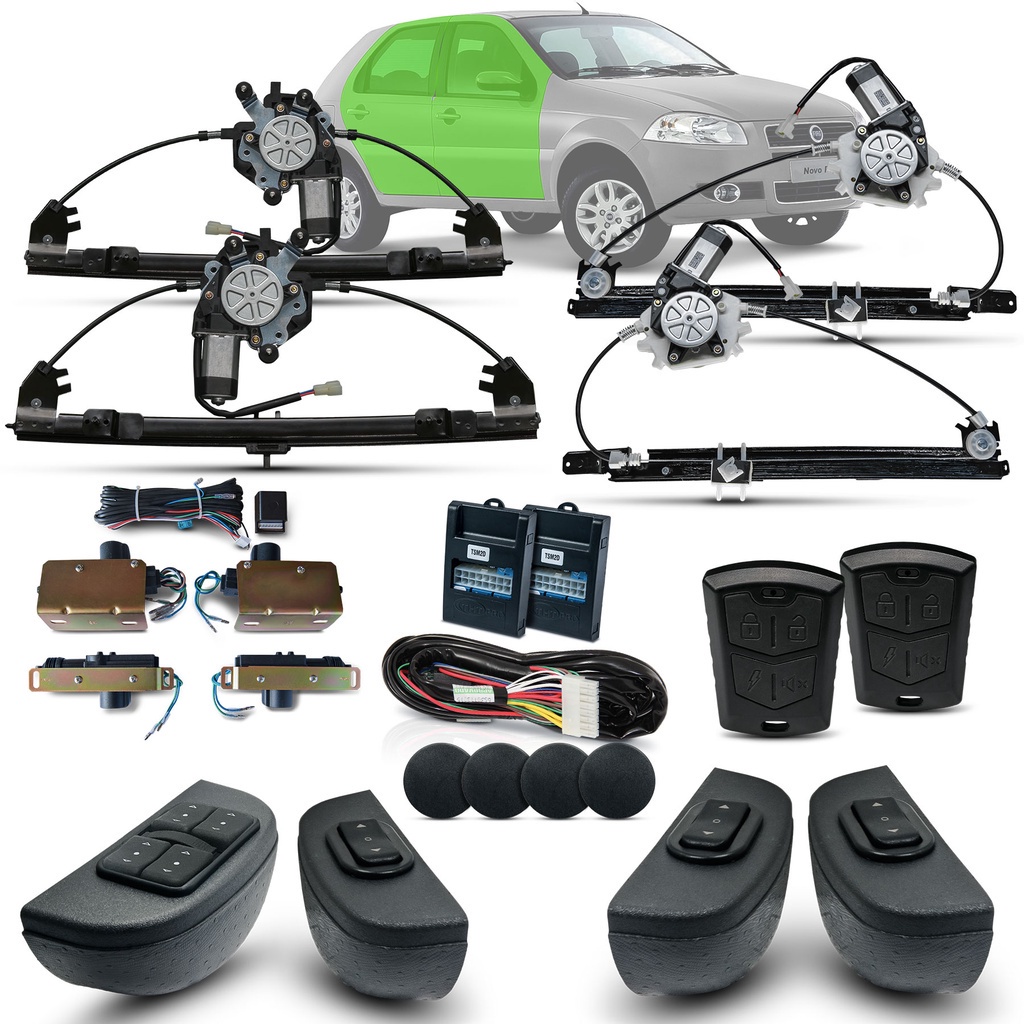 Kit Vidro Eletrico + Trava e Alarme N. Palio Atractive / Grand Siena 4P Completo (12/) Alternativo Inteligente