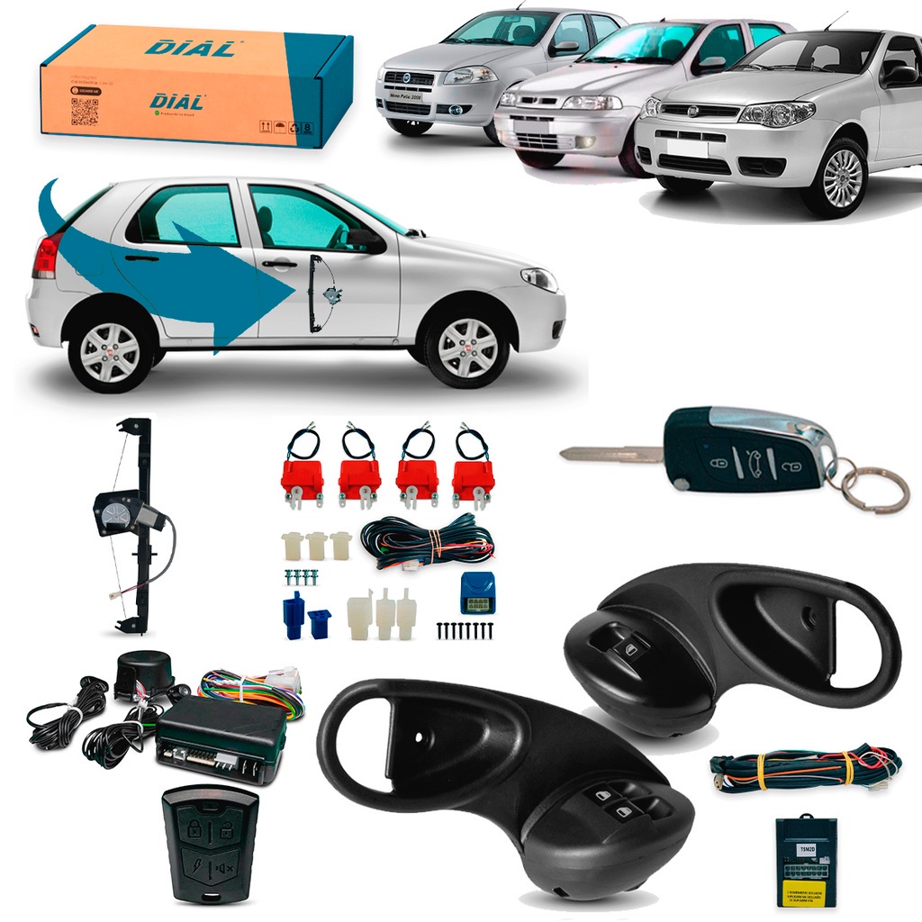 Kit Vidro Eletrico + Trava e Alarme Novo Palio 4P Compl Ate 2011 Inteligente