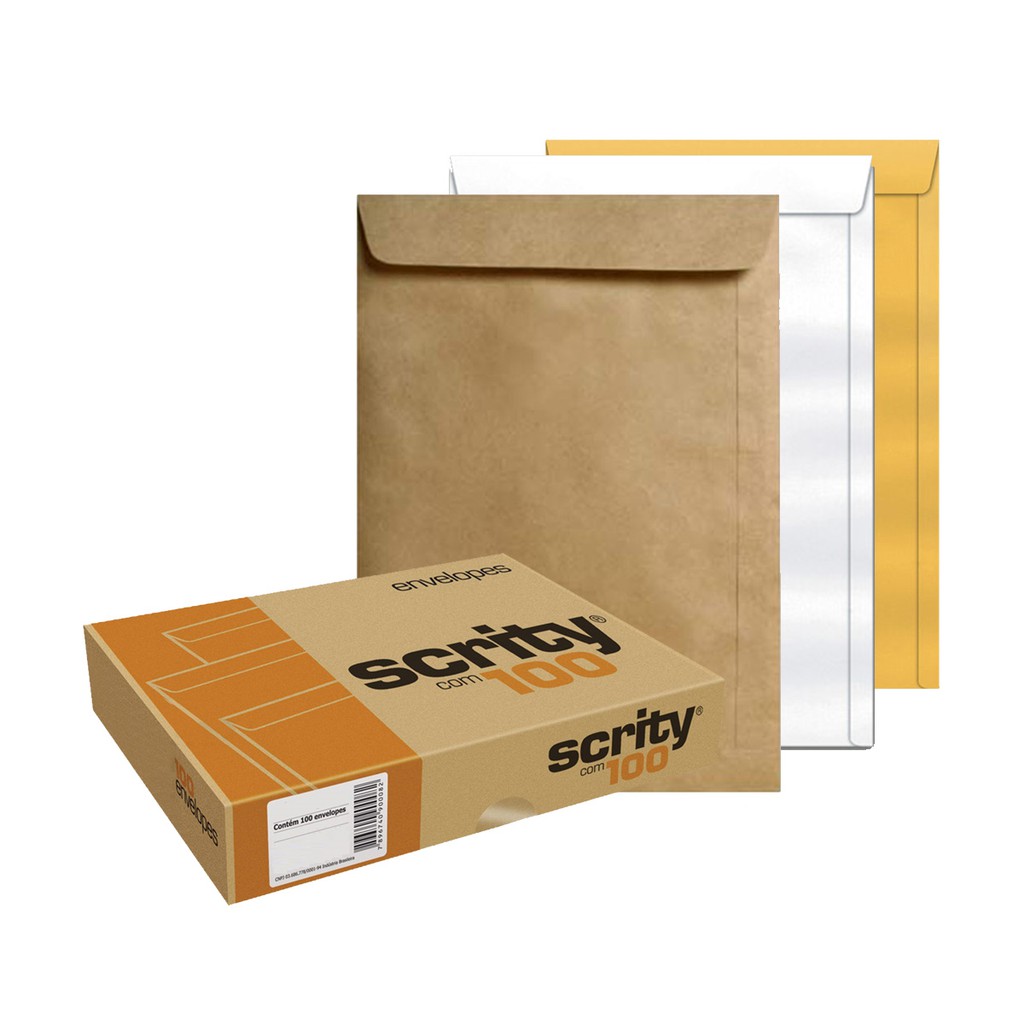 Envelope A4 Saco Kraft Branco Natural 22 X 32 - C/100 Scrity