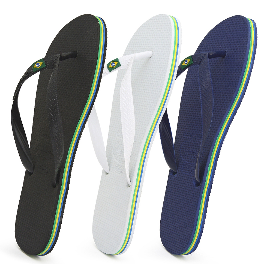 Kit 2 Pares De Chinelo Masculino Brasil Branco Chinelos Preto Macio Confortável com Bandeira Unisex