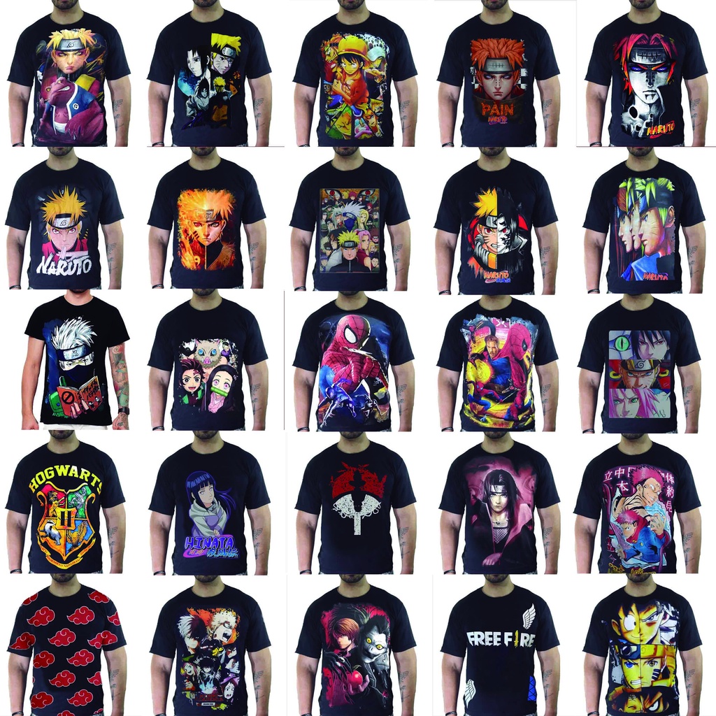 Camisas kit 10 camisetas de anime Naruto Dragon Ball one piece jujutsu demon slayer boku no hero